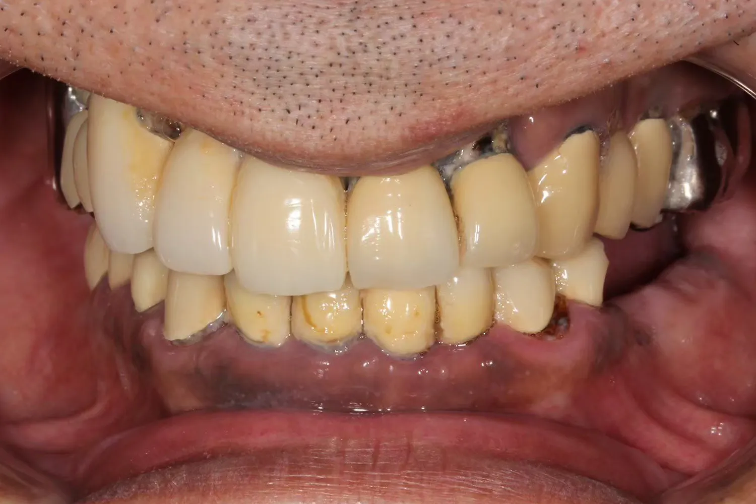 噛むと前歯に違和感があり、被せ物の色も気になる