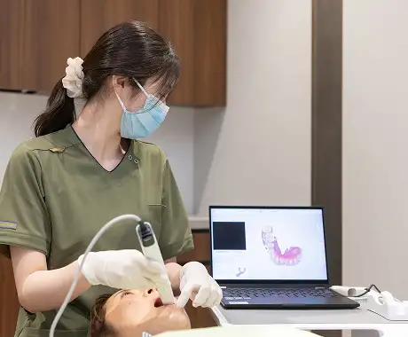 当院では、患者さまのライフスタイルやお口の状態に合わせ、適切な間隔(目安は3〜6か月に1回)での定期チェックをご案内しています。